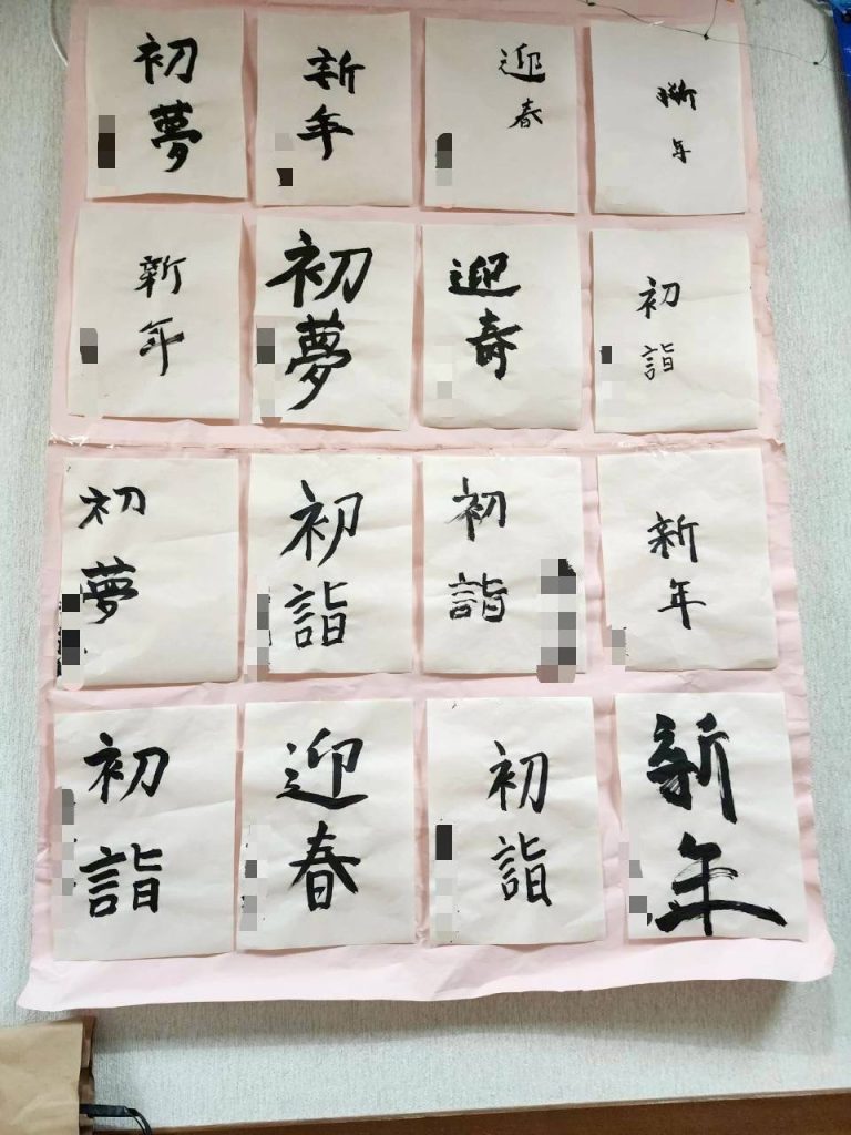 「書初め久しぶりで書けるかな~😅」と言われていましたが、目標や願いを込め、皆さん集中して書かれました😊💓