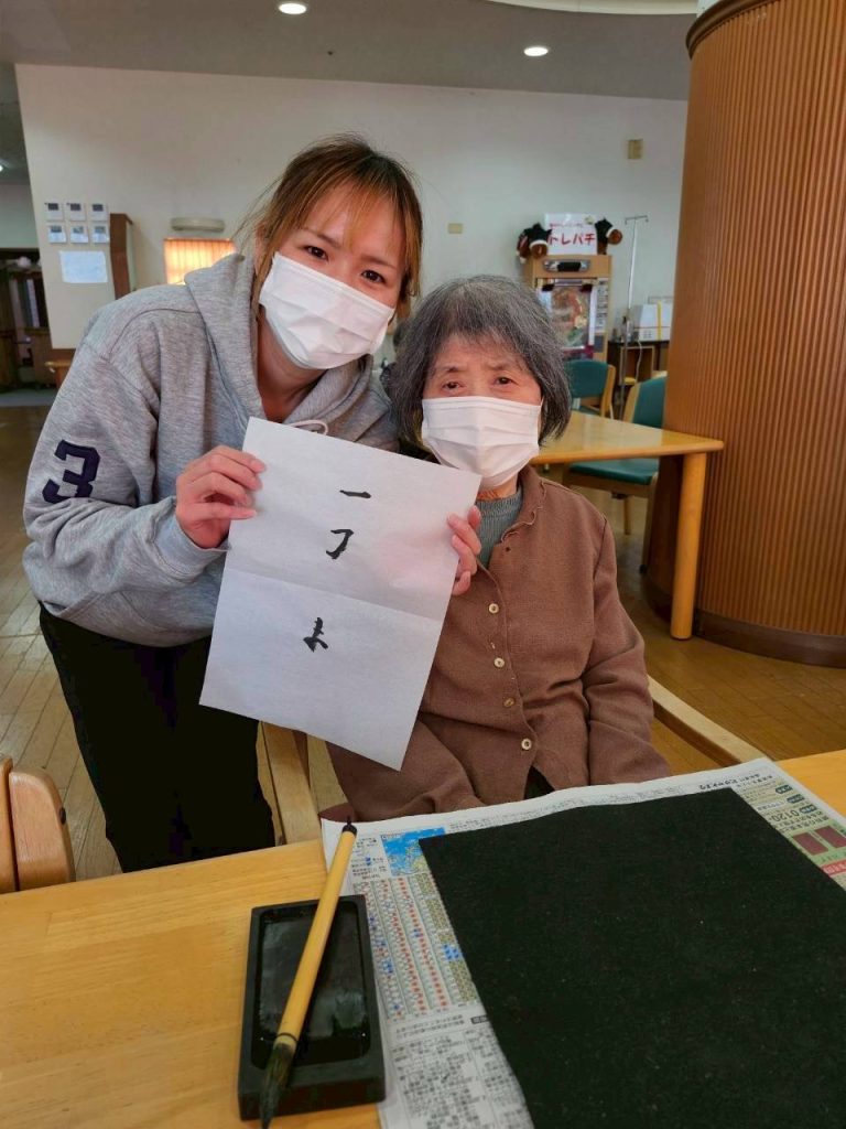 新しい年を迎えデイサービスでは書初めをしました( *´艸`)💗